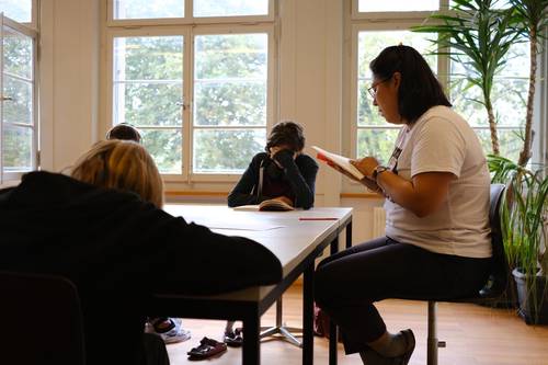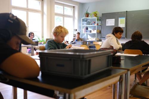 In den Mittel- und Oberstufenklassen arbeiten die Schüler*innen an ihren individuellen Arbeitsplänen, welchen sie gemeinsam mit den Lehrpersonen und passend zu ihren Schulzielen erstellen. Im wöchentlichen Gespräch werden Lernfortschritte reflektiert und diskutiert.