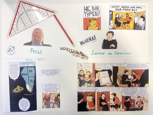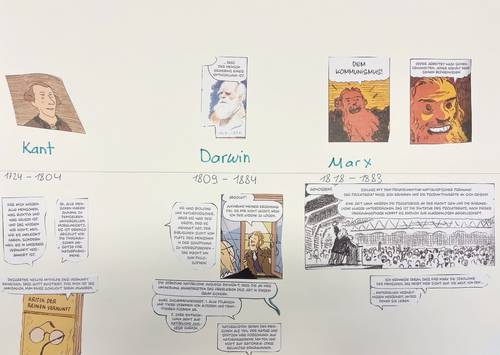 Mit der Graphic Novel «Sofies Welt» lernten die Schüler*innen die Geschichte der Philosophie sowie ausgewählte Philosoph*innen kennen. Sei es beim Tee oder auf einem winterlichen Spaziergang: die Schüler*innen diskutierten angeregt anhand philosophischer Fragestellungen.