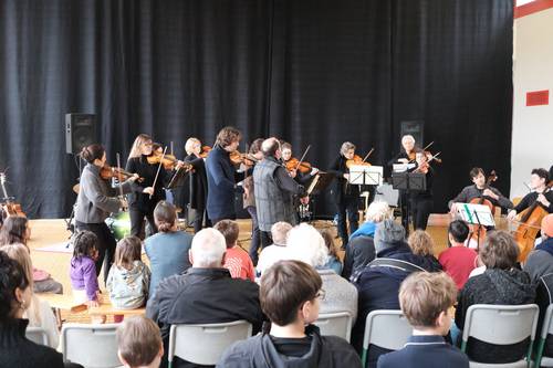 Am 17.01.2025 besuchten uns die Musiker*innen der Camerata Bern. Das Orchester spielte ein Konzert für die Schule, danach spielten die Schüler*innen Bands der OSBe für die Musikerinnen und zum Abschluss sangen wir gemeinsam. Yannick bekochte uns alle und wir hatten die Möglichkeit uns mit den Musiker*innen auszutauschen. Über die Begegnung freuen wir uns sehr und wir bedanken uns ganz herzlich für das wunderschöne Konzertgeschenk.
