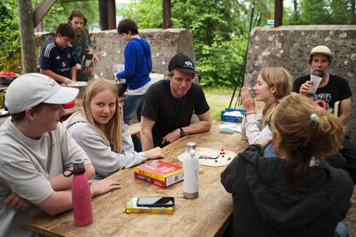 Die Oberstufenklassen und das BVJ verbrachten ihre Landschulwoche im Zeltlager in Erlach. Das Wetter zeigte sich von seiner wilden Seite – wechselhaft, nass und herausfordernd. Doch alle hielten zusammen und meisterten die Tage im Freien. Gefischt wurde wie immer ausdauernd und ein! Fisch wurde gefangen. Chefkoch Yannick riet jedoch von einer kulinarischen Verwertung ab. Als das Unwetter besonders heftig wurde, reisten wir ins Papiliorama – warm, trocken und voller Schmetterlinge. Trotzdem (oder gerade deswegen) blicken wir mit Vorfreude aufs nächste Jahr – dann hoffentlich mit mehr Sonne, aber genauso viel Abenteuer.