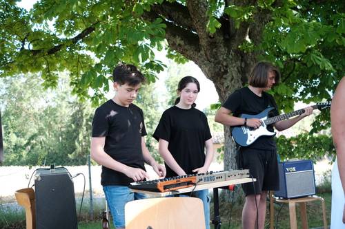 Was für ein schöner Abend! Am 25. Juni spielten die US/MS-Band und die OS-Band ihre Abschlusskonzerte im Garten. Trotz der sommerlichen Hitze war die Stimmung super – es wurde gespielt, gelacht und gut gegessen. Es gab ein leckeres Buffet, frisch Gegrilltes und kühle Getränke. Den krönenden Abschluss bildete ein kleiner aber feiner Schulball.